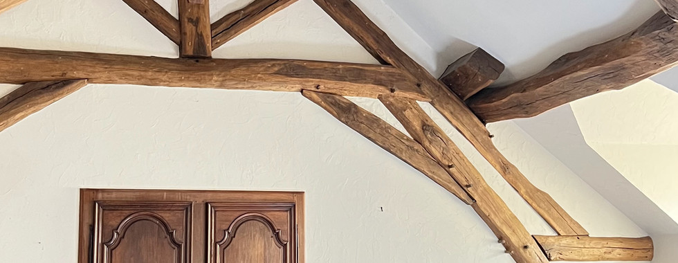 - Chambre de 35 m² avec superbe charpente apparente, sol moquette, 1 fenêtre, 1 vélux